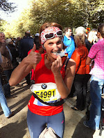 Wieder gut zu Hause angekommen, kann ich nur von einem überwältigendem, atemberaubendem, extrem emotionalen Berlin Marathon 2012 berichten. Nicht nur das Wetter war perfekt - Sonnenschein und zwischen 8 - 13 Grad, sondern alle Menschen am und beim Berlin Marathon 2012 waren von der Stimmung begeistert und alle wurden mitgerissen. Scheinbar auch ich, denn ich konnte meine Zielzeit von 3.30 Stunden um 1 Minute unterbieten. So kam ich zwar nicht ganz mit der Spitzgruppe die 2.04 Stunden gelaufen ist ;-)